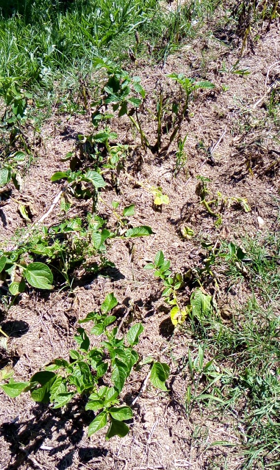 Je pense oui, combiné aux limaces. En fait il a fait tellement humide, sur un terrain qui avait été Paillé depuis l'automne, les limaces ont attaqué les feuilles qui ne s'en sont pas sorti. J'ai réagi tard et mal, à partir du moment ou je suis allée faire ma récolte de limaces chaque soir, le mal était fait, et la pulvérisation de purin d'ail est arrivé trop tard.j'ai encore espoir, peut-être à tort d'avoir une récolte de patates même petite...