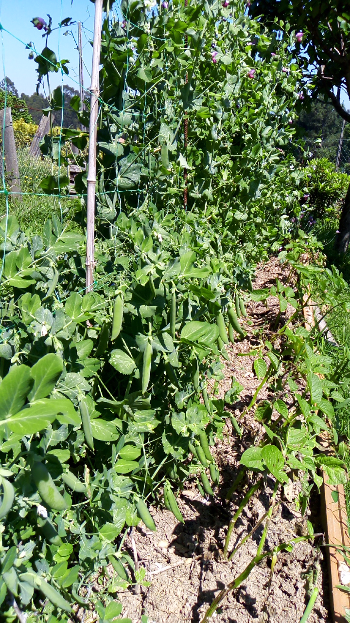 241 mm de pluie en avril, 38 en milieu de journée hier, les limaces prennent leurs aises, elles attaquent les patates qui pourrissent a cause de l'humidité... dès qu'une fraise change de couleur, je trouve une ou 2 limaces dessus... les pois gourmands penchent dangereusement sous le poids de la pluie combinée au vent... Beaucoup de fleurs mais pas de pois pour le moment, pas assez chaud...