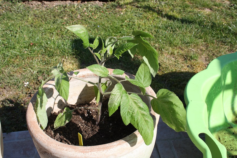 Toutes les tomates sont en terre. J'en ai planté 59 en pleine terre, 3 en pots, 1 en jardinière. Je me suis rendu compte qu'il y en a qui pousse un peut partout. Je les laisse et on verra bien ce qu'elles donnent.