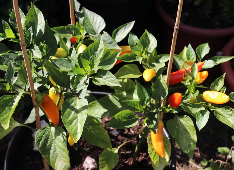 Voilà plusieurs années que j'essaie de garder quelques piments pour l'année suivante, sous serre maintenue à au moins 5 ° pour d'autres frileuses, mais le taux de réussite est de l'ordre de 25 % en raison du manque de chaleur pendant la période hivernale et de trop d'humidité. Ceux qui résistent sortent leur feuillage à cette époque-ci alors que les plants semés vers le 24 janvier ont déjà des fruits. Et c'est plus facile de mettre du compost au fond du trou de plantation des nouveaux plants que d'ajouter du compost dans les pots de l'année précédente. Les piments/poivrons font partie des plantes gourmandes.