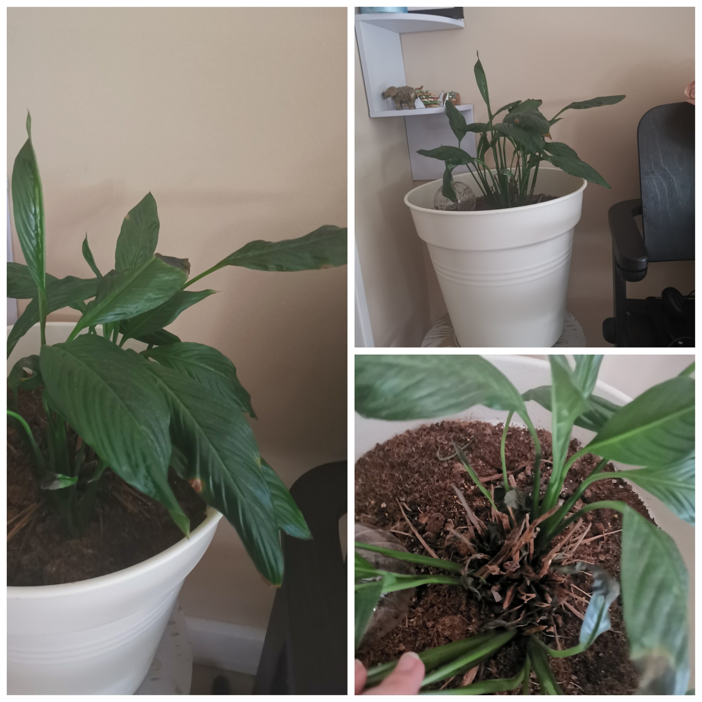 Je suis nouvelle ici et j'ai besoin de votre aide pour sauver mon spathiphyllum mal en point.