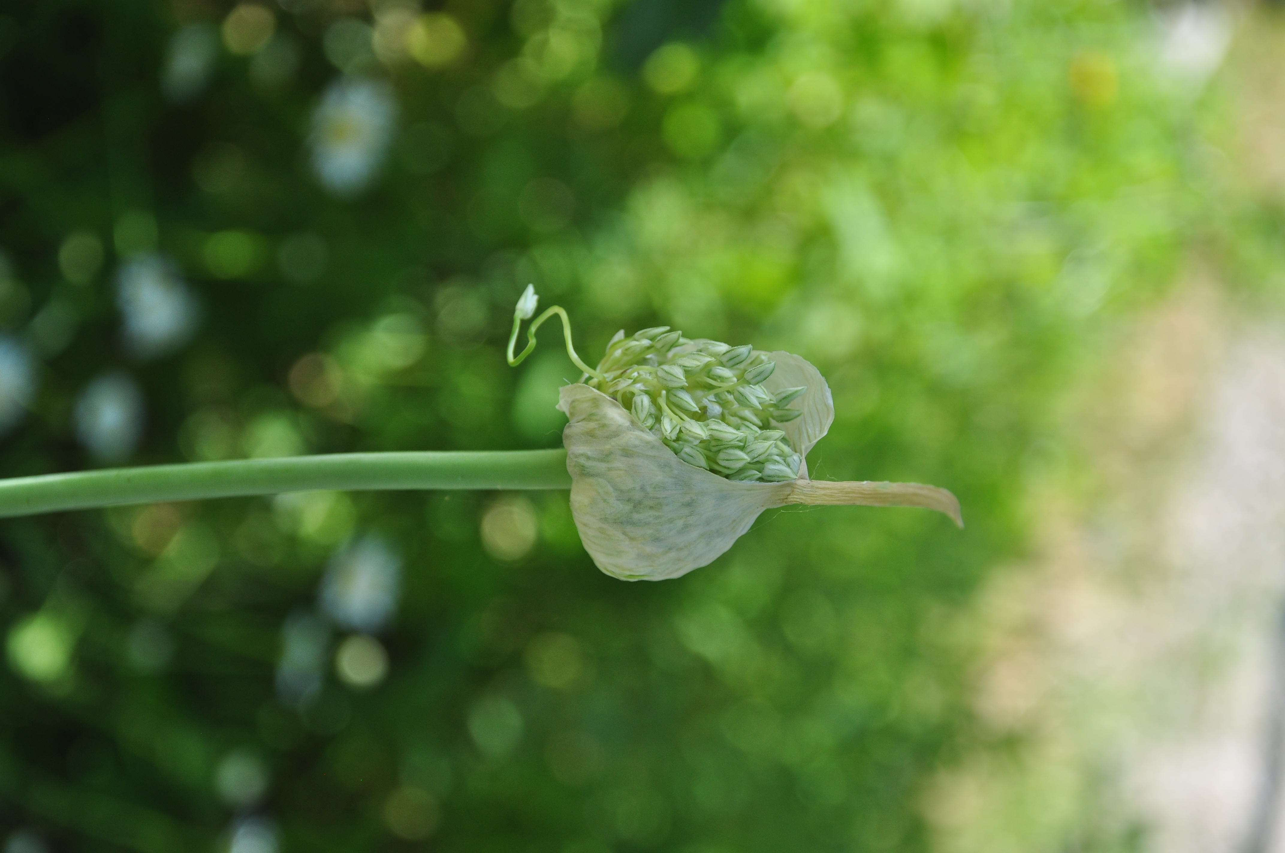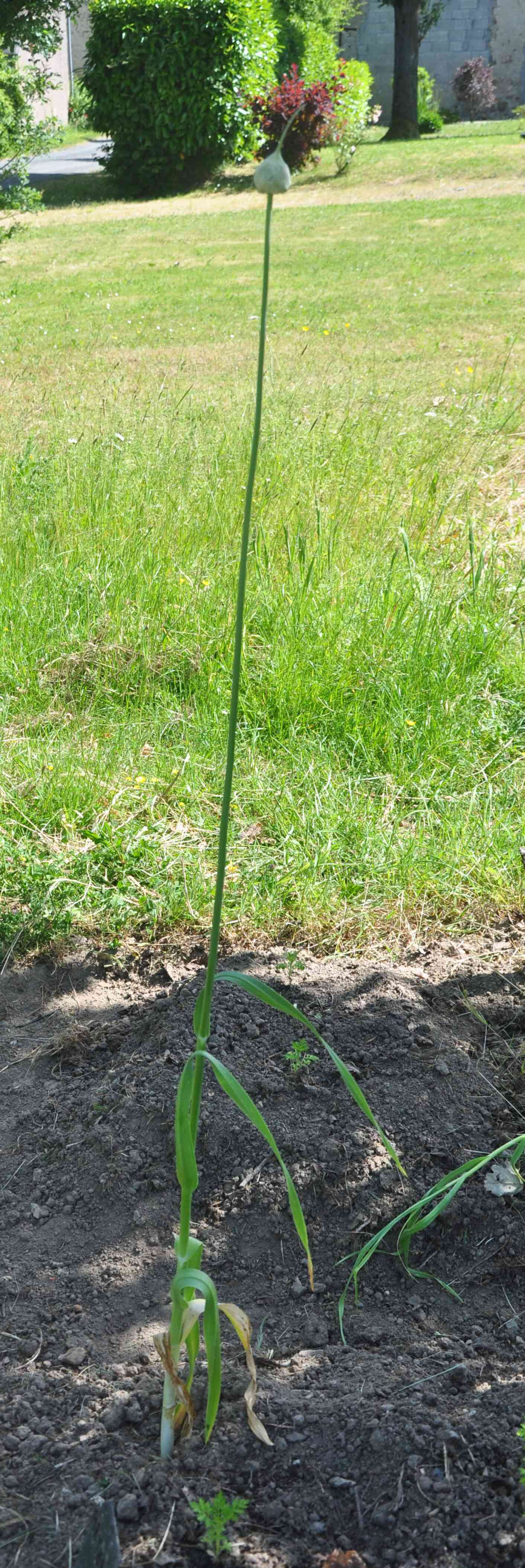 Je ne pense pas que ce soit de l'ail. Ça ne ressemble pas à ceux que j'ai dans mon jardin. Ou bien de l'ail ornemental. En tout cas, il est monté en fleur.