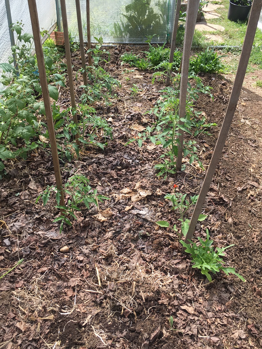 Travaillé 3 heures ce matin pour finir de planter les tomates: au total 59 plants en