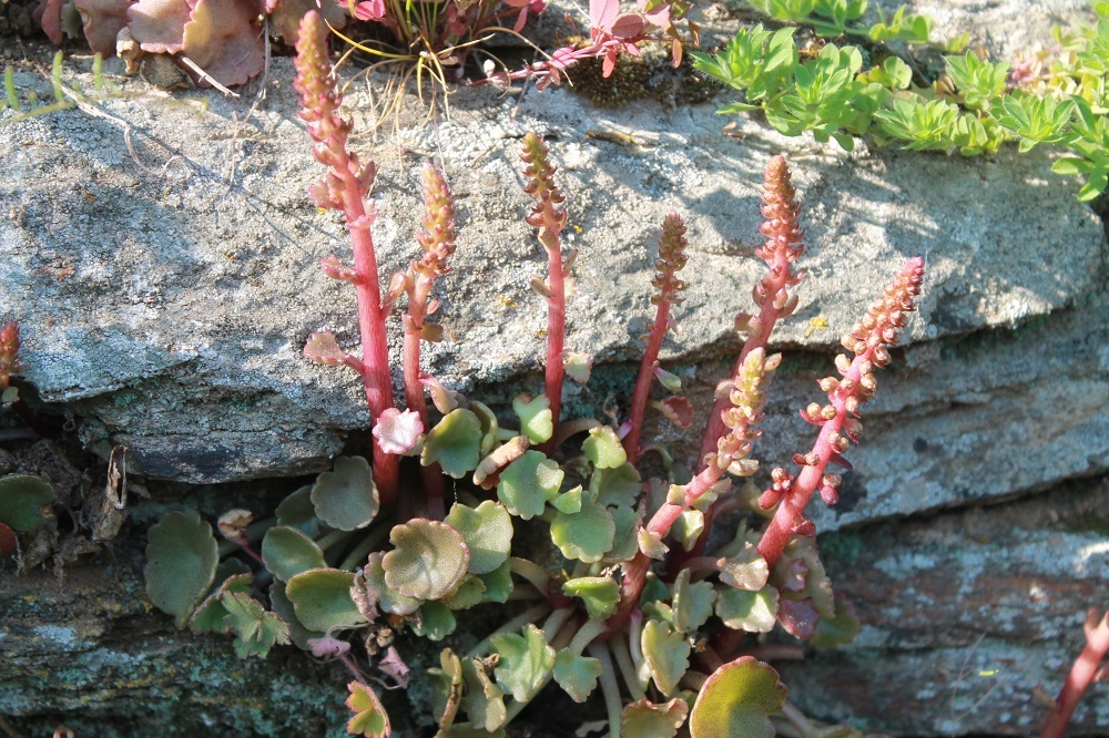 Pas loin sur le chemin, entre les cailloux de schiste des murettes, de mini nombrils de Vénus