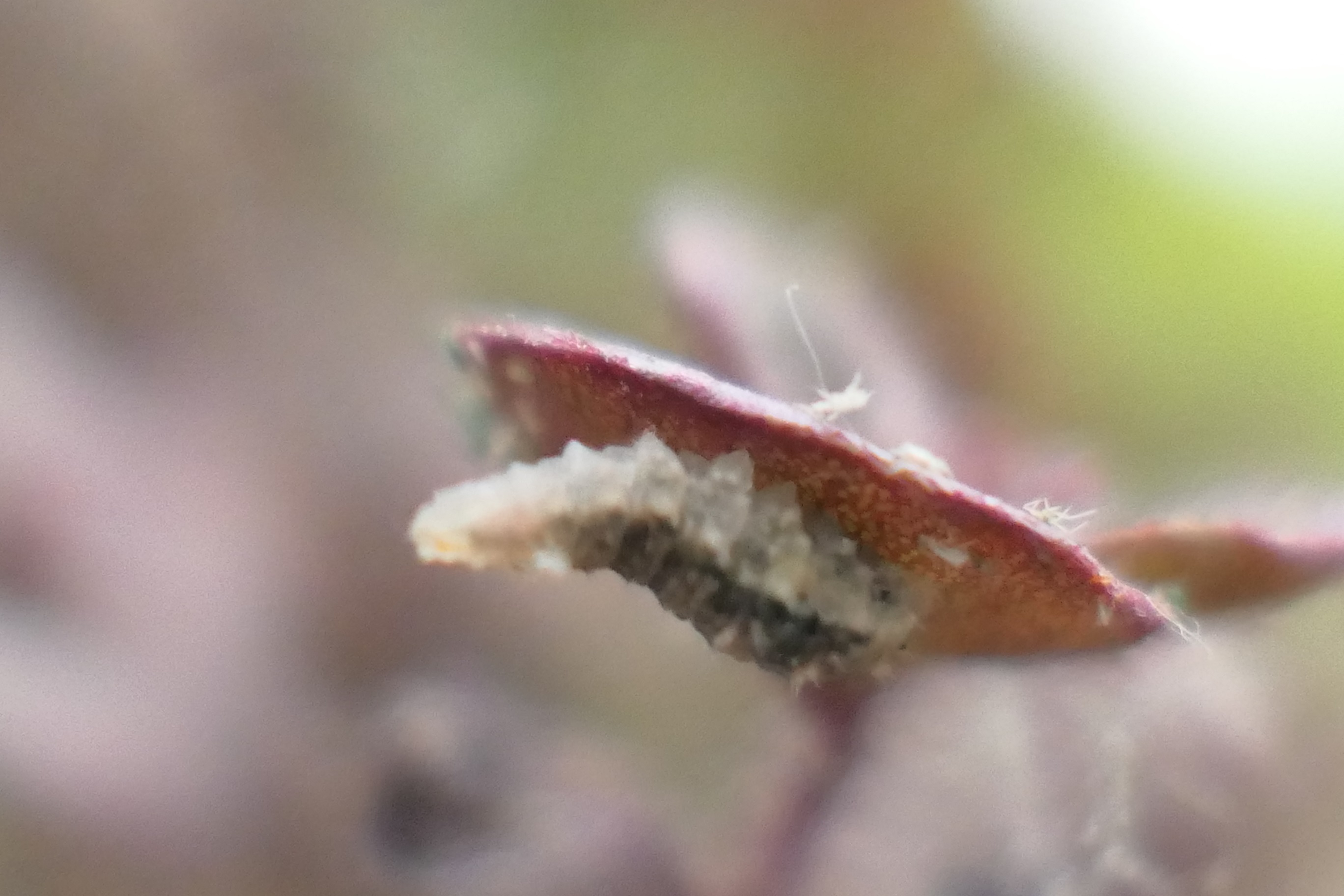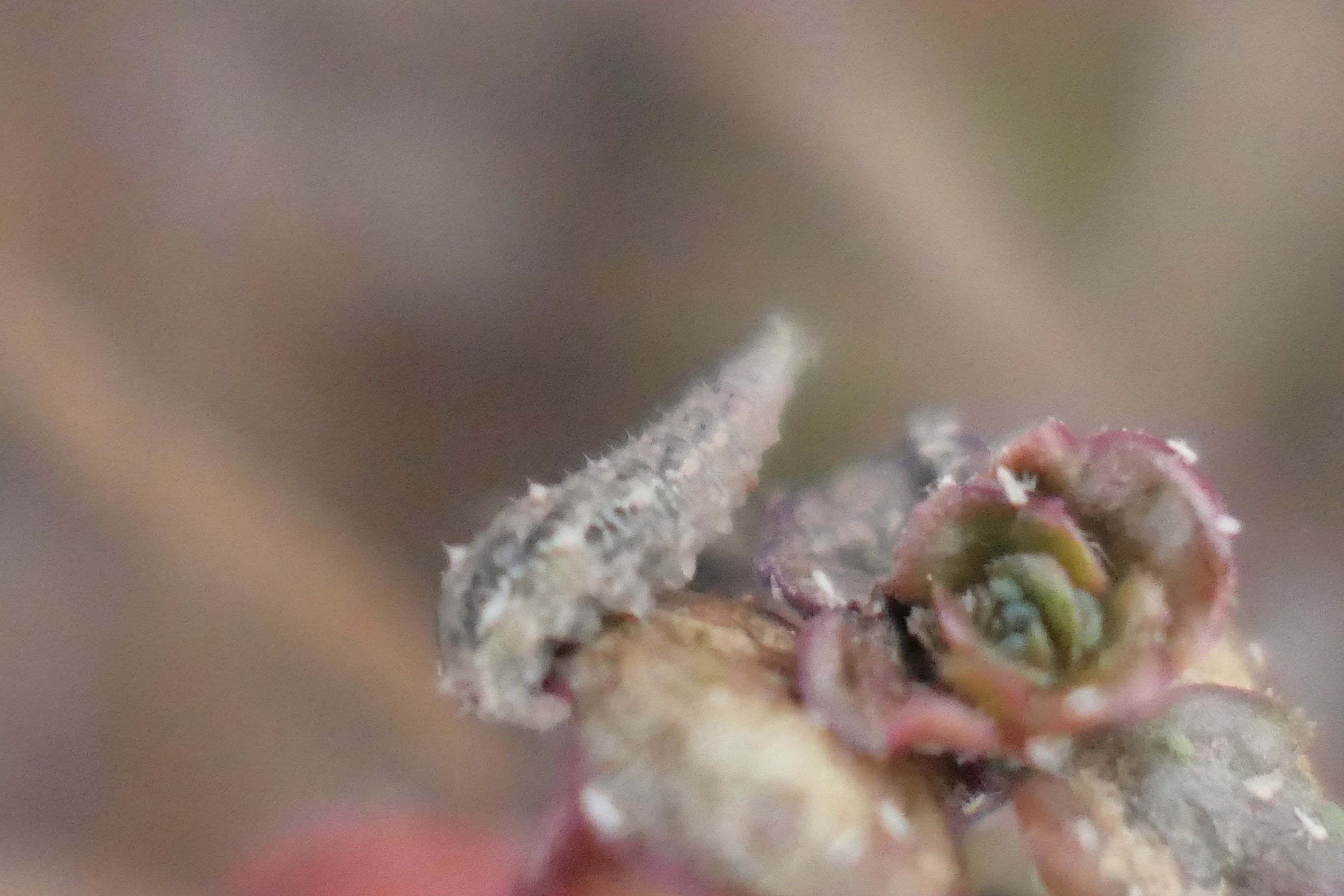 J'ai constaté, aujourd'hui, de nombreuses "larves" qui me sont inconnues et très présentes dans une de mes jardinières. Plus précisément sur un Sedum et sur des pousses de salades.