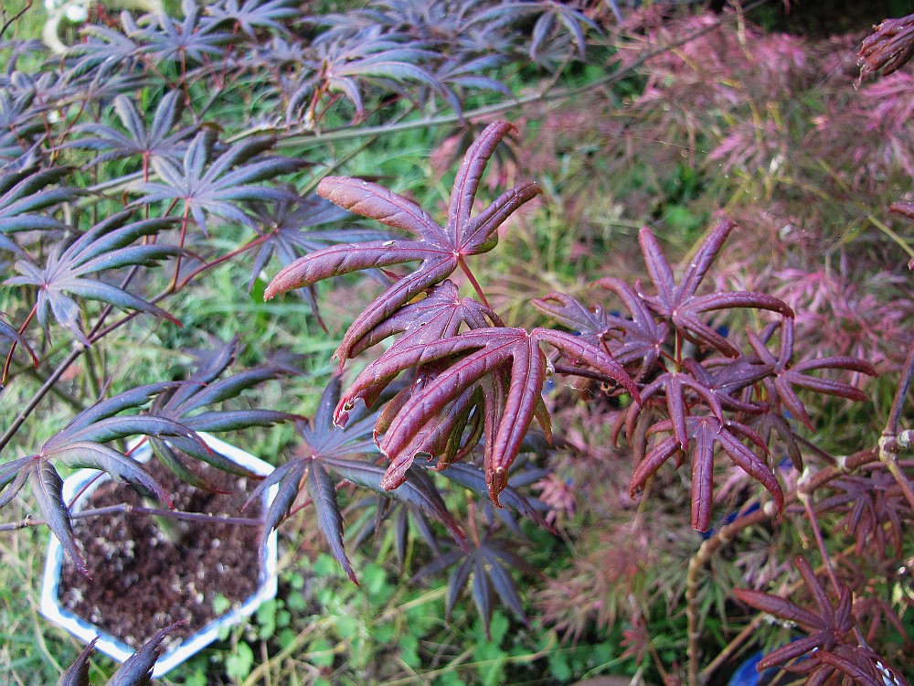 Acer palmatum ‘starfish', synonyme de ‘Peve' (patronyme) ‘starfish' (étoile de mer). Ce palmatum a un développement modéré , adulte il supportera un peu de soleil. Son cousin ‘trompenburg’ est un amoenum (EDIT: matsumurae selon Yano) un peu plus difficile à conduire, du moins en pot.