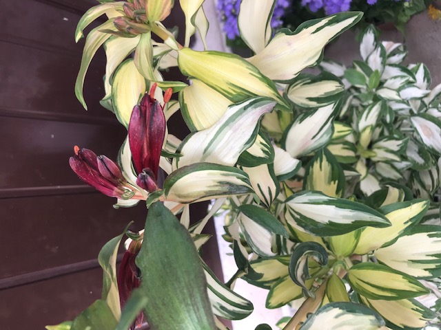 La panachée à fleurs rouges me fait penser à un "Lys des Incas"... Pardon, je n'ai pas le temps de chercher le nom latin. Bref, peut-être une piste.
