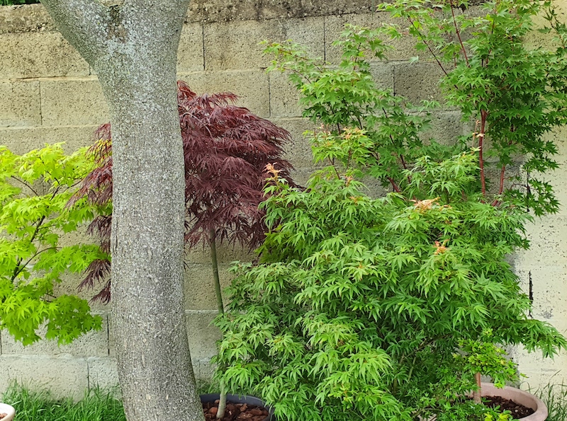 Ça y est tous mes érables en pot (sauf Skeeter) ont repris leur place d'été sous l'albizzia