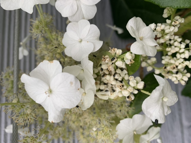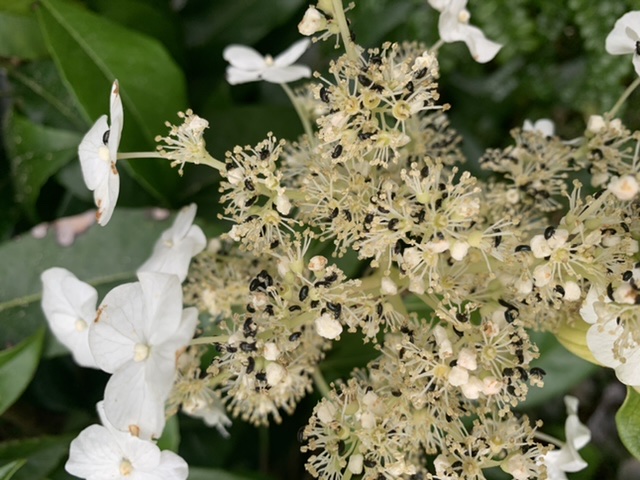Je cherche a identifier des petits insectes volants qui envahissent les fleurs de mes hortensias grimpants, quelqu’un a t il une idée ? Merci !