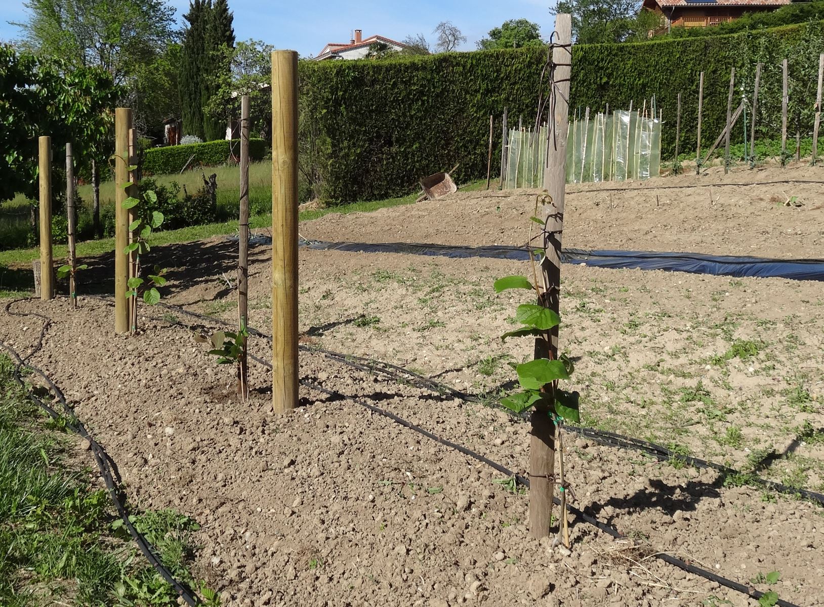 PS : dans la même idée, on plante souvent trop rapproché et les kiwi prennent vite de la place. Ce serait à refaire je rajouterai au moins un mètre entre chaque plant.