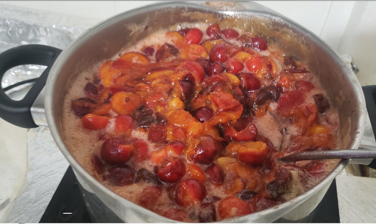 Je fais donc cuire ma confiture avec les fruits entiers, ensuite je retire les noyaux qui se sont détachés tout seuls(soit avec une écumoire ou en les passant dans une passoire à gros trous) Je refais cuire un peu avant de mettre en bocaux