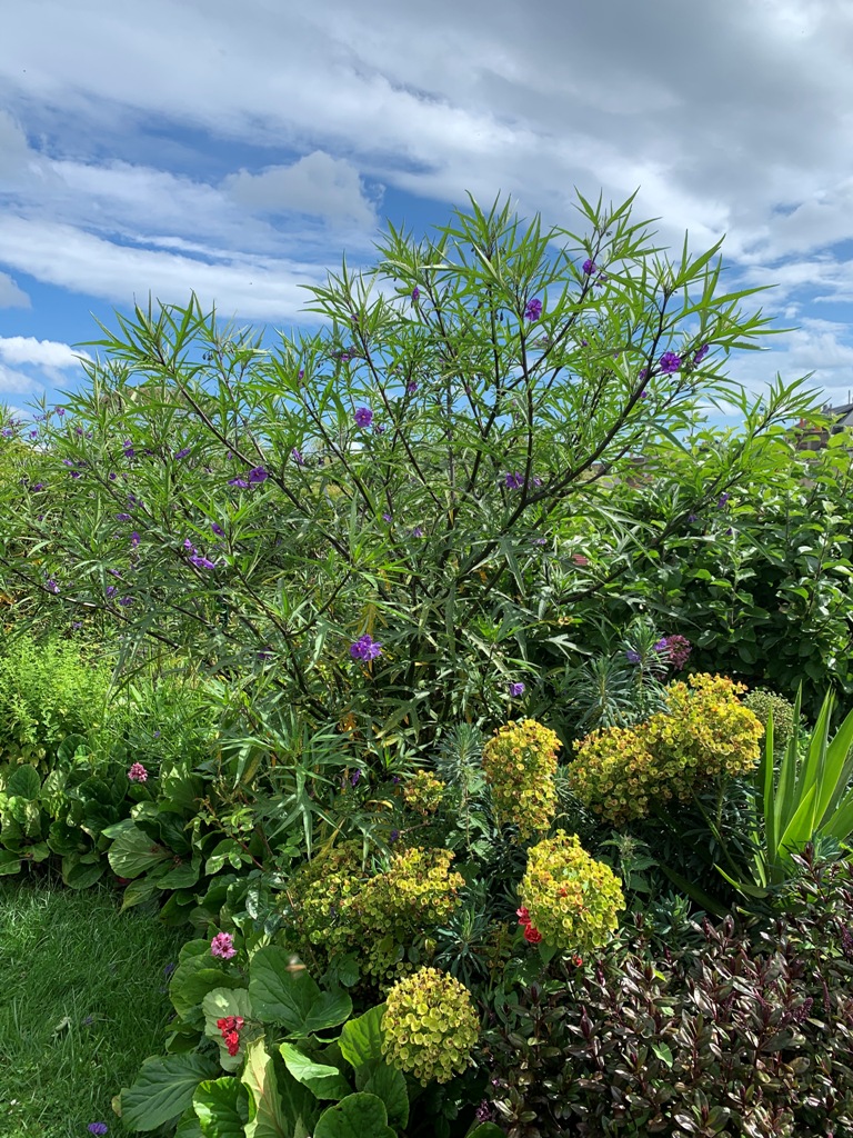 Merci Daniele, pour toutes ces précisions, l'arbuste à fleurs violette, d'après ce que j'ai pu voir sur le net est un arbuste de 60 à 90 cm, hors les miens sont à plus de 2 m!!! mais effectivement ça y ressemble fortement.daniele 43 a écrit : lun. 15 juin 2020 12:44 Sur la 3eme photo je vois un buisson à fleurs violettes , qui est sans doute Ruellia brittoniana