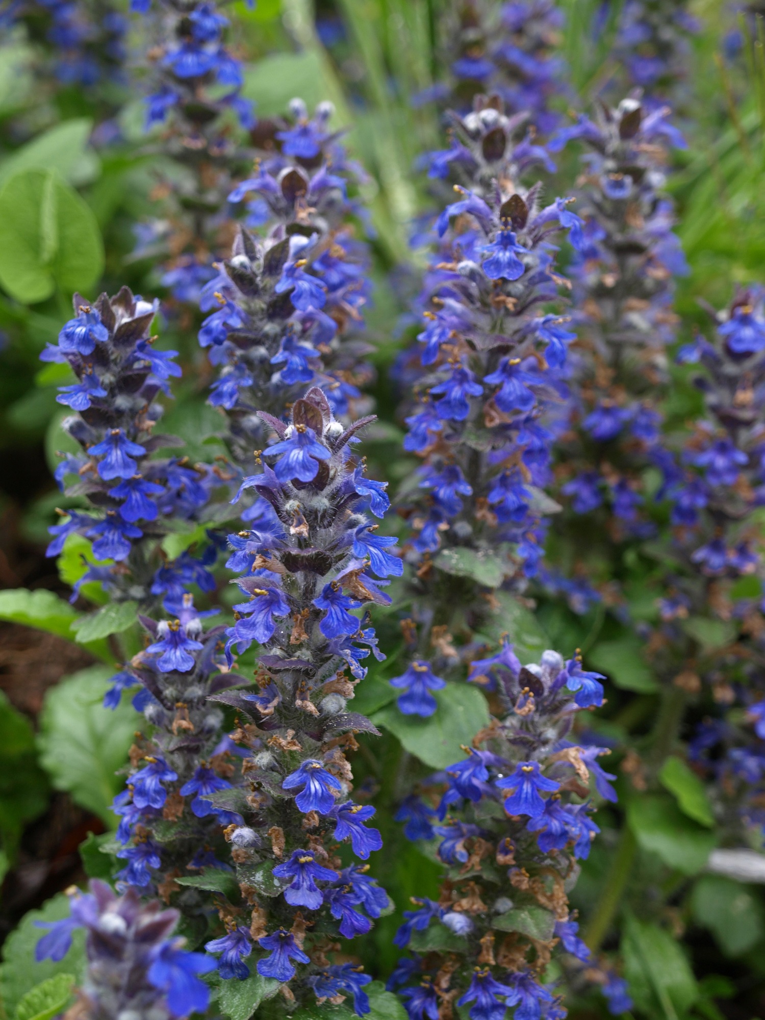 Cette belle Lamiacée à fleurs bleues est une Brunelle à grande fleur ; Prunella grandiflora