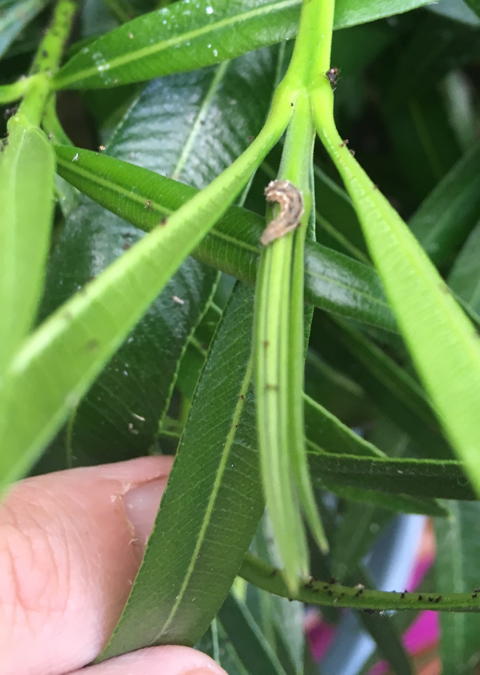 Mini chenilles sur laurier rose