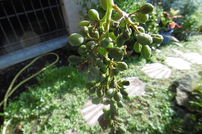 je viens de découvrir sous le feuillage qui est sains plusieurs grappes dont les
