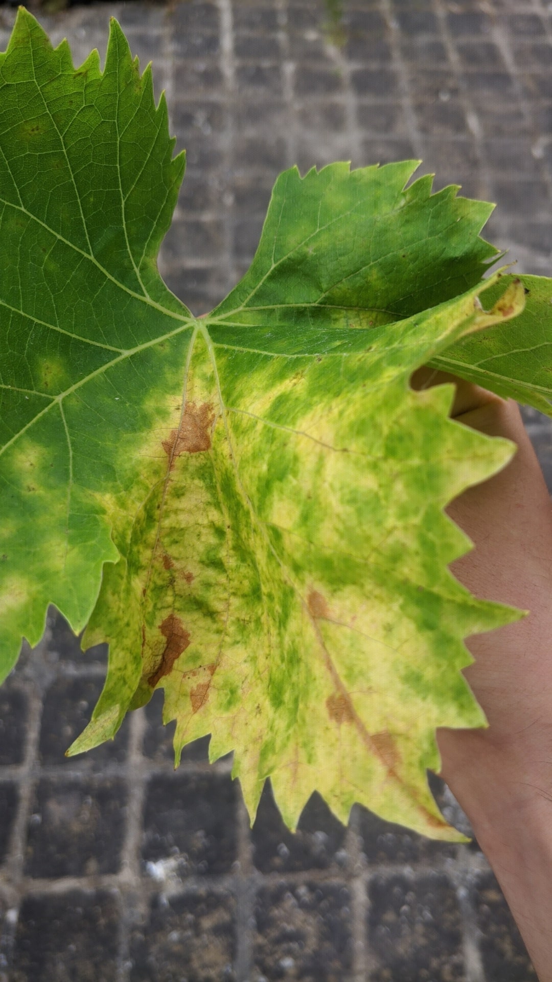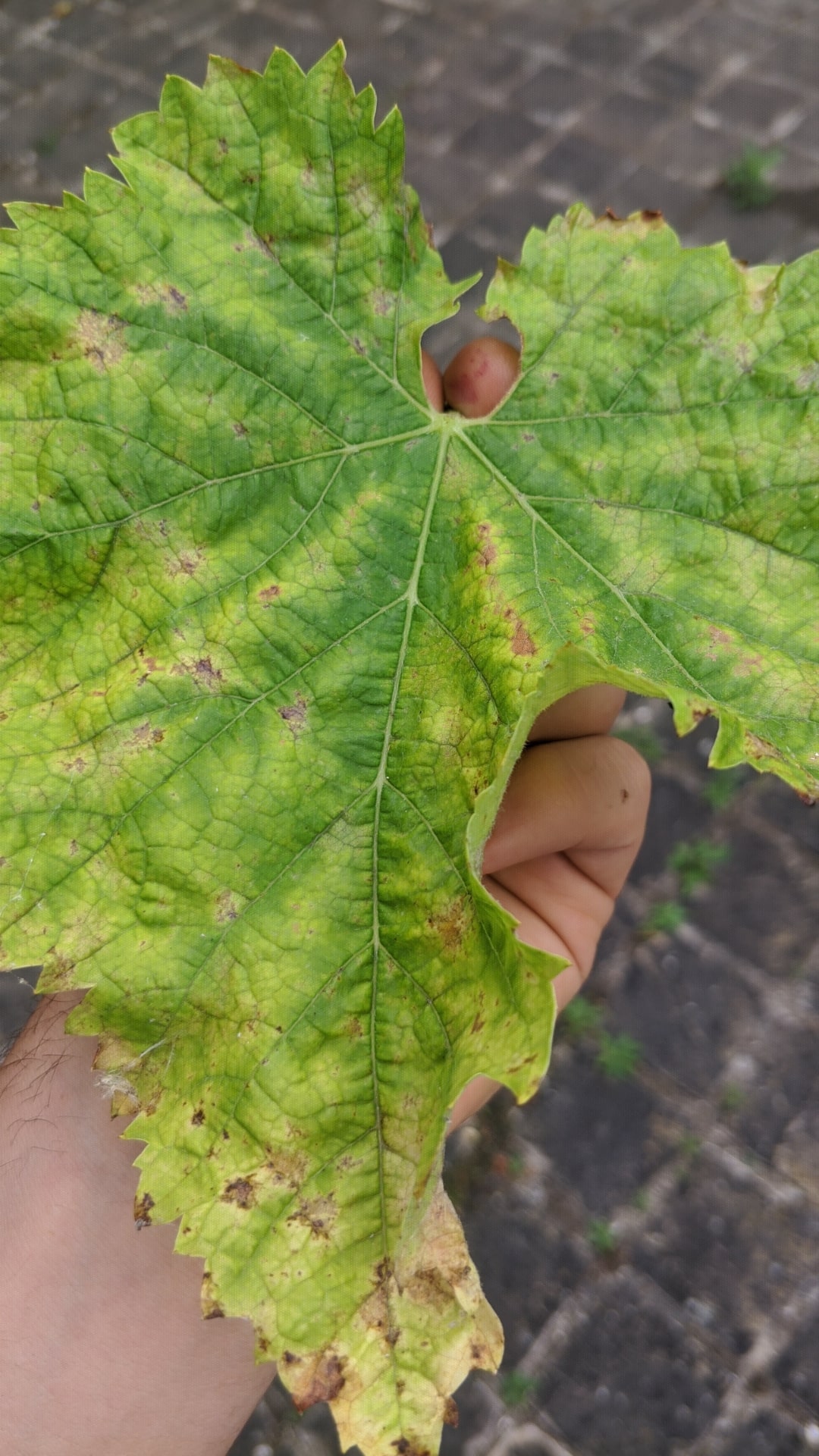 J'ai observé depuis quelques temps des tâches brunes qui s'agrandissent et se propagent sur les feuilles de ma vigne. De ce que j'ai vu sur internet il semblerait que ce soit du Black rot mais je n'en suis pas certain. Est ce bien ça ? Que faire ? Sur mon autre vigne j'ai aussi remarqué la présence de tâches mais celles ci semblent pas être du même type. Pouvez vous m'aider ? Merci pour votre aide