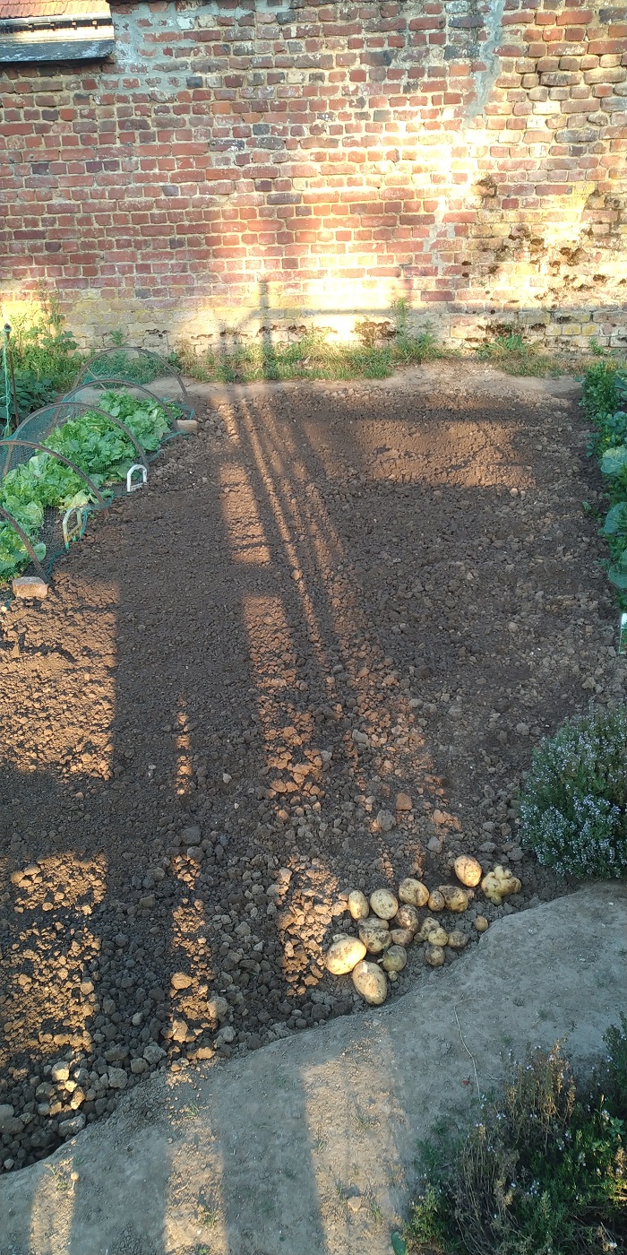 Au petit potager arrachage pommes de terre Appolo 83 jours et préparation emplacement repiquage poireaux