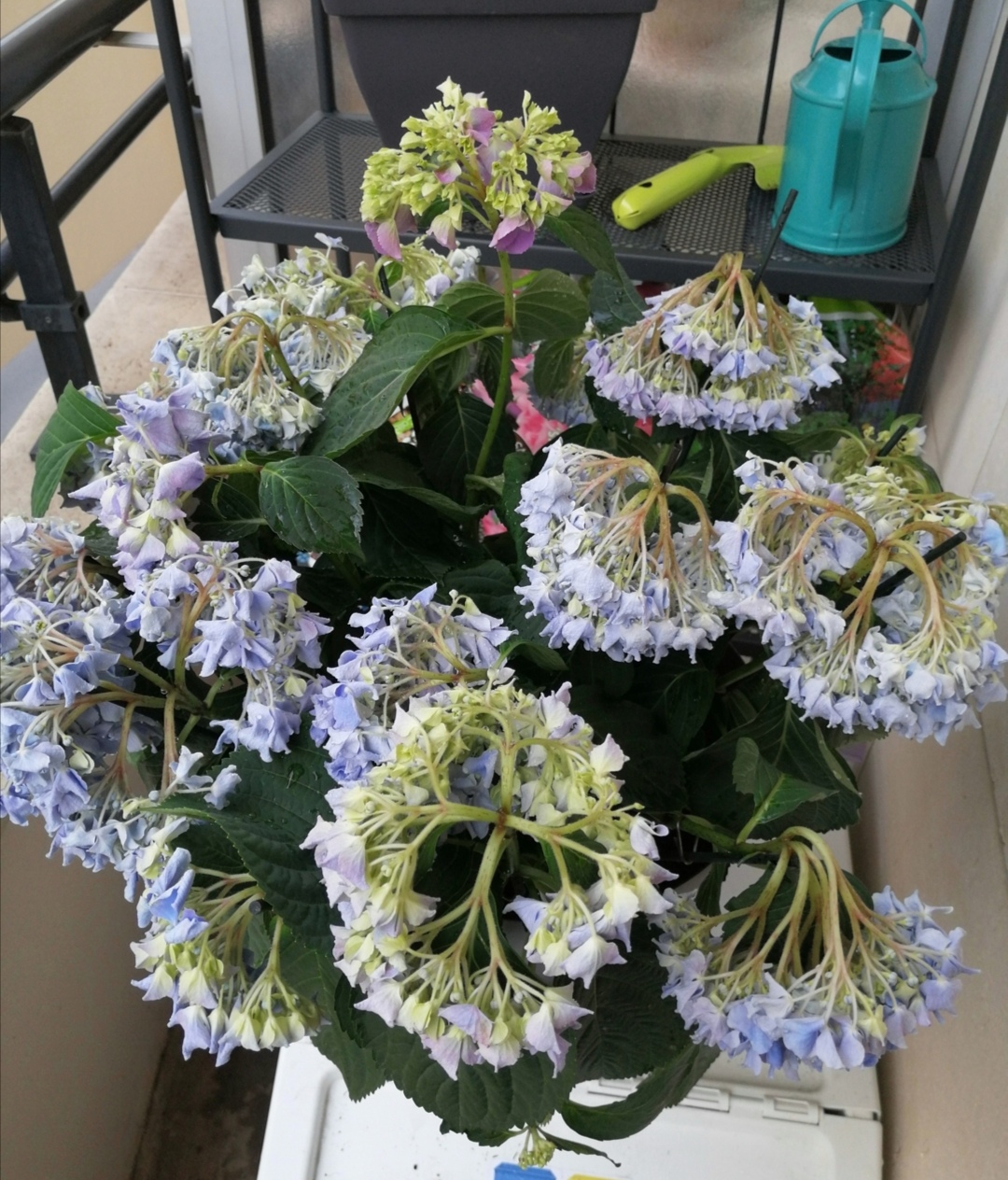 Alors voilà j'ai acheté un hortensia en jardinerie que j'ai planté en pot sur mon balcon (à l'ombre). Mais petit à petit les tiges au niveau des fleurs se ramolissent et sont tombantes. Je ne sais pas quoi faire... Trop d'eau ? Pas assez ?