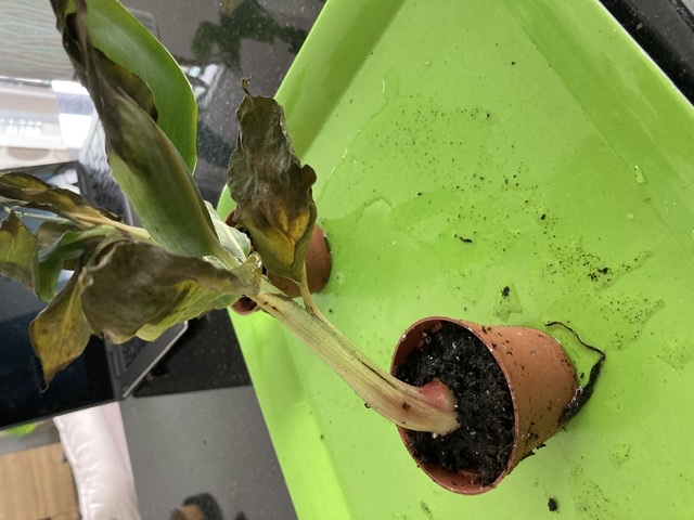 J’ai reçu deux bébés bananiers, les tiges sont tordues et les feuilles sont brunes.