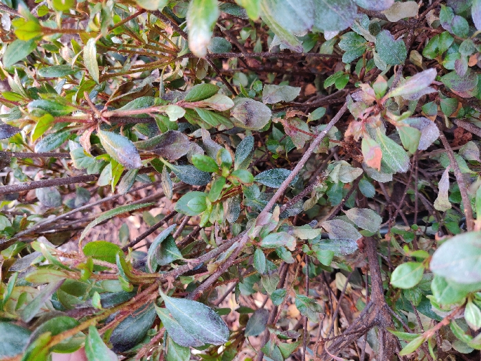 Depuis 1 mois environ mon Azalée se dépérit doucement: feuilles "rouge", sèches qui tombes, duvet blanc etc... (Voir les photos)