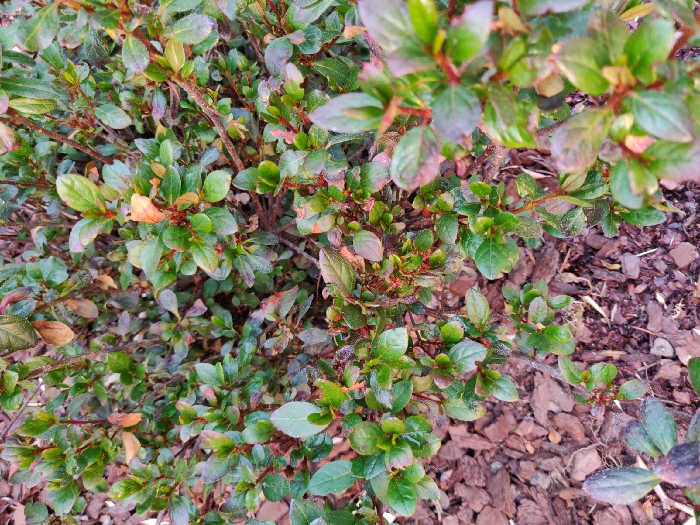 C'est une Azalée que j'ai planté au printemps dans un sol bien drainé à base de terre de bruyère/terre du jardin avec engrais et le sol est paillé avec des cosses de cacao.