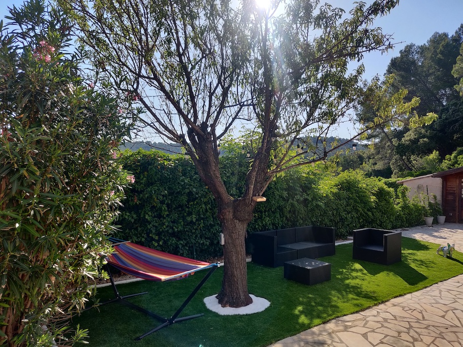 De plus, il est entouré de gazon synthétique fraichement posé (1 semaine).
