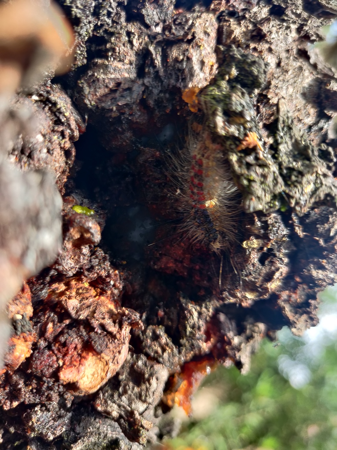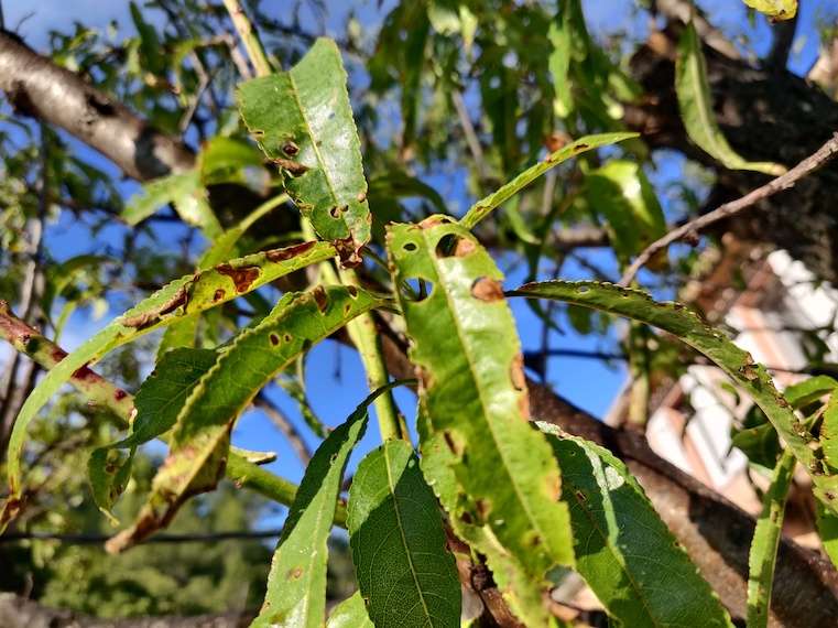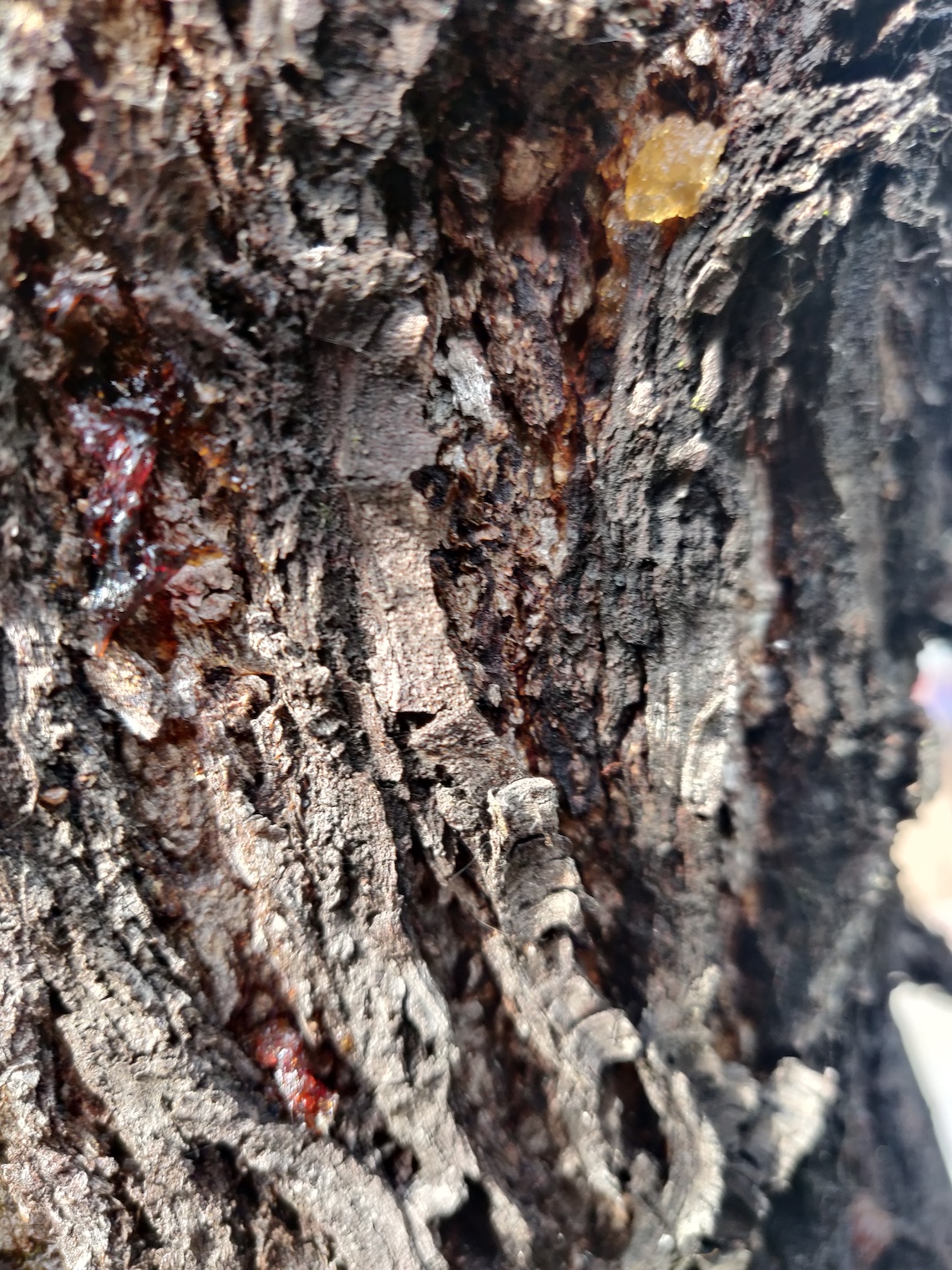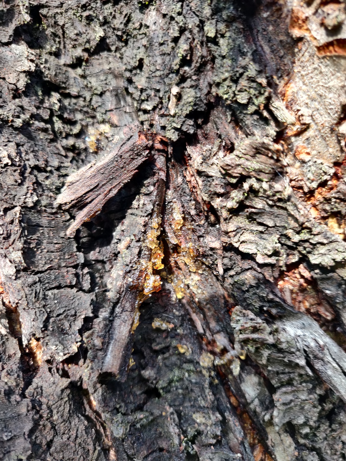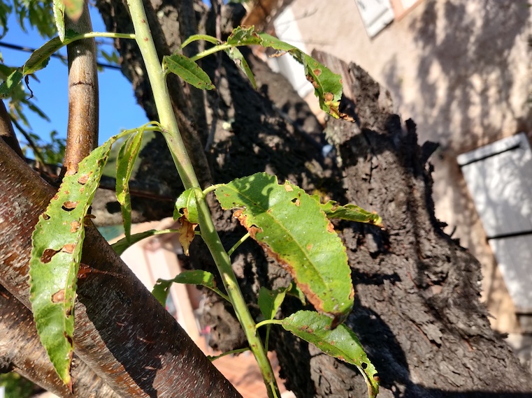 J'ai découvert que l'arbre génère beaucoup de gomme et que beaucoup d'insectes ont infestés le tronc et les branches (fourmis, chenille...). De plus, de la mousse commence à faire son apparition.