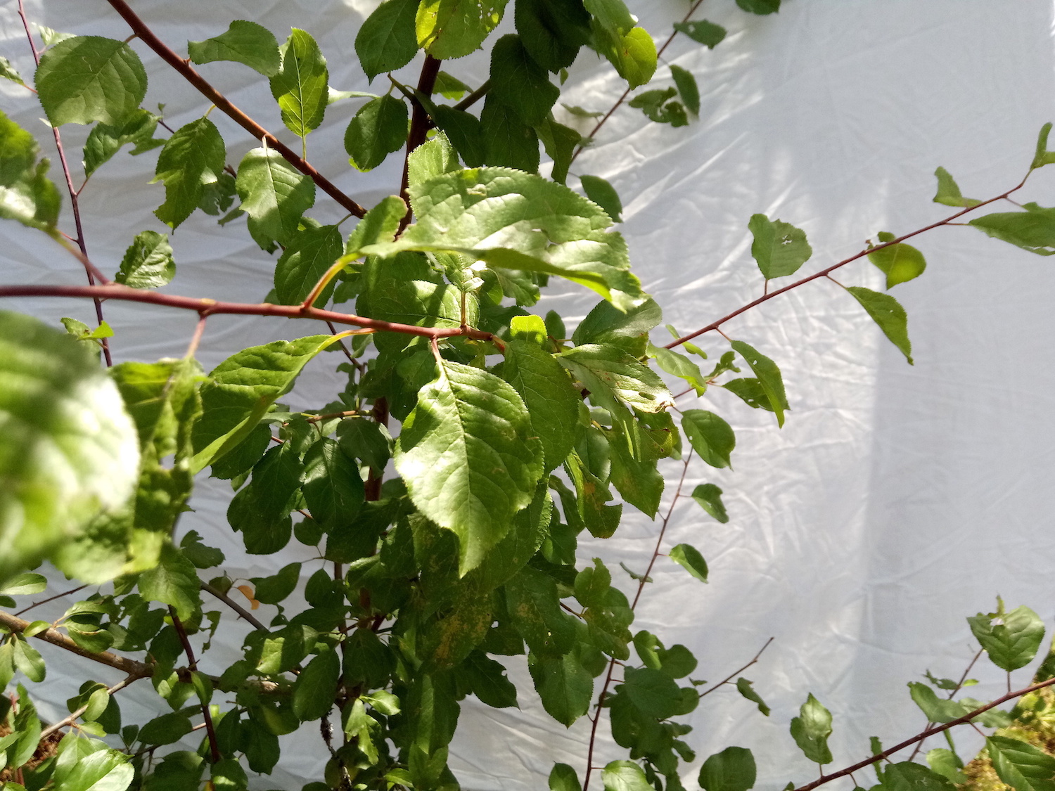 sur 150 mètres carrés de mon jardin, entre un bouleau et un sapin (mort l'été dernier) ont poussé depuis deux ans 5 arbustes dont les feuilles font penser à des pruniers. Mais ils poussent, comment dire, en touffe : sur 4 des 5 arbustes, il n'y a pas un tronc unique mais plusieurs pousses (jusqu'à une dizaine) qui partent du sol en bouquet.