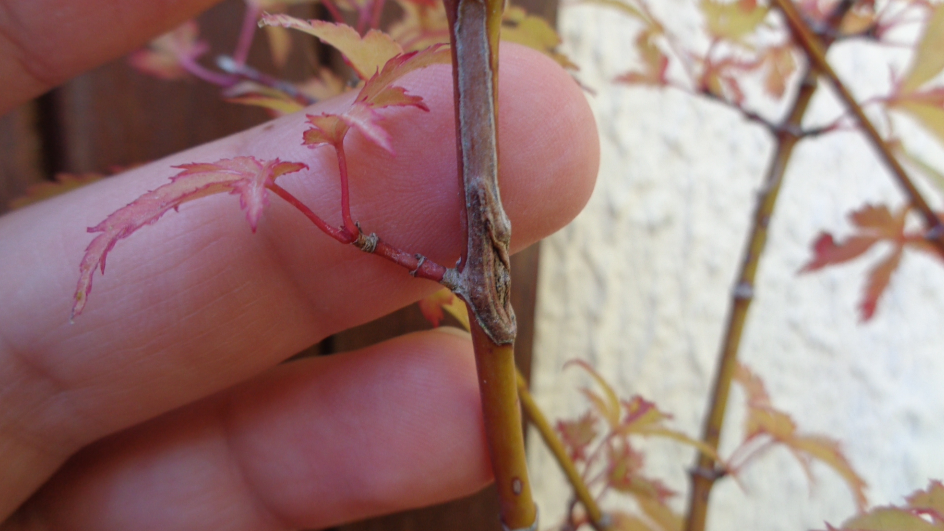 La 1° photo, celle du tronc de ton dissectum, montre une longue fente, c’est l’accroissement des tissus qui pousse l’écorce à s'écarter; c’est gagné.
