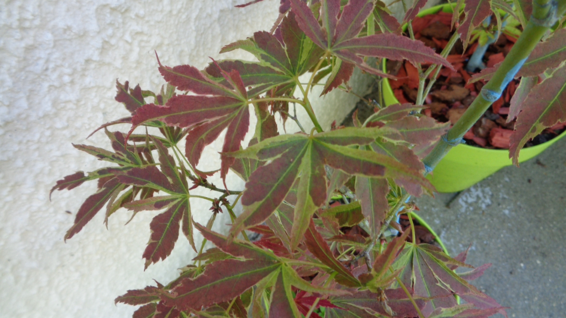 Ton Manyo No Sato me parait super vert (trop vert?) il ressemble à l'érable du japon butterfly . Il faudra que tu le taille un peu l'année prochaine si non les longues branches sur les cotés vont être retombantes , non ?