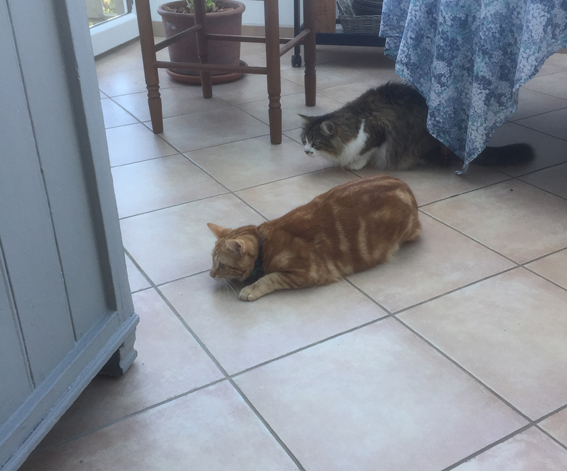La feria va commencer en décembre, il faudra coincer la vieille guerrière pour les vaccins, gants de cuir obligatoire, le trajet jusque chez le véto s’effectuera après haute lutte (la cage est assimilée à un piège dans sa tête je suppose), elle arrivera à la consultation en mode « épandage » dans une odeur à fuir. J’aurai droit à un « tient voilà Gaic et la star de la castagne », on finira par la vacciner après rodéo, heureusement elle aura l’air d’avoir oublié le soir même, enfin presqu’oublié parce qu’elle n’acceptera pas de se faire caresser durant une semaine, si je le tente elle gronde et crache. Heureusement ce n’est qu’une fois par an, le reste du temps nous nous entendons plutôt bien …
