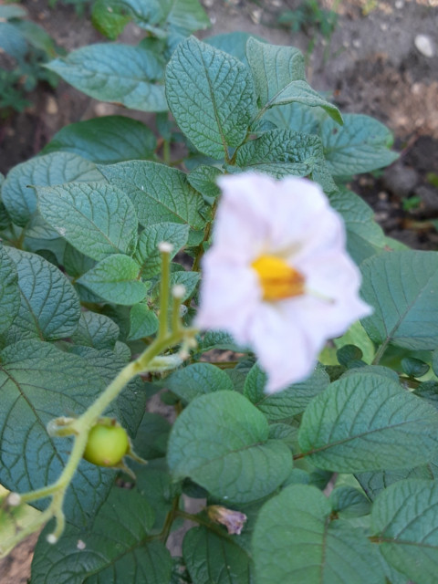 J'ai fait un rang de PdT, elles ont pratiquement toutes des fruits que j'ai enlevé, histoire de ne pas trop pomper d'énergie.