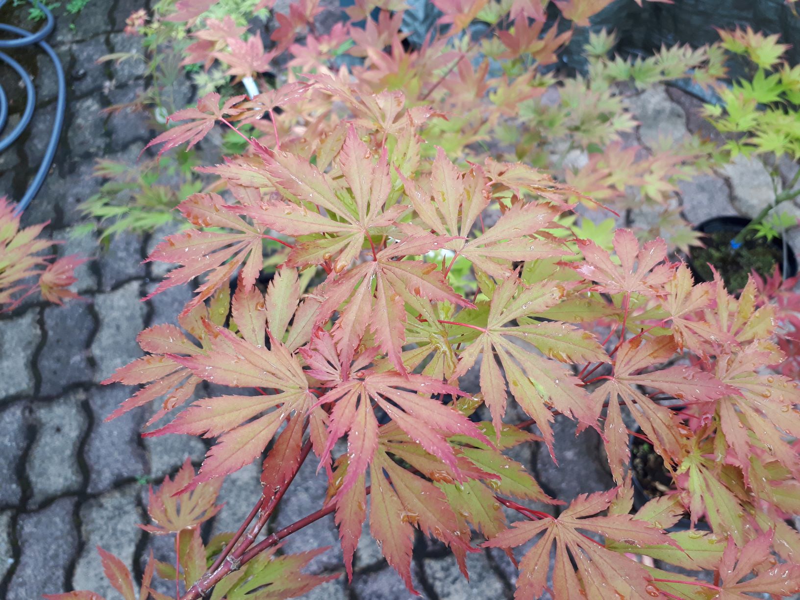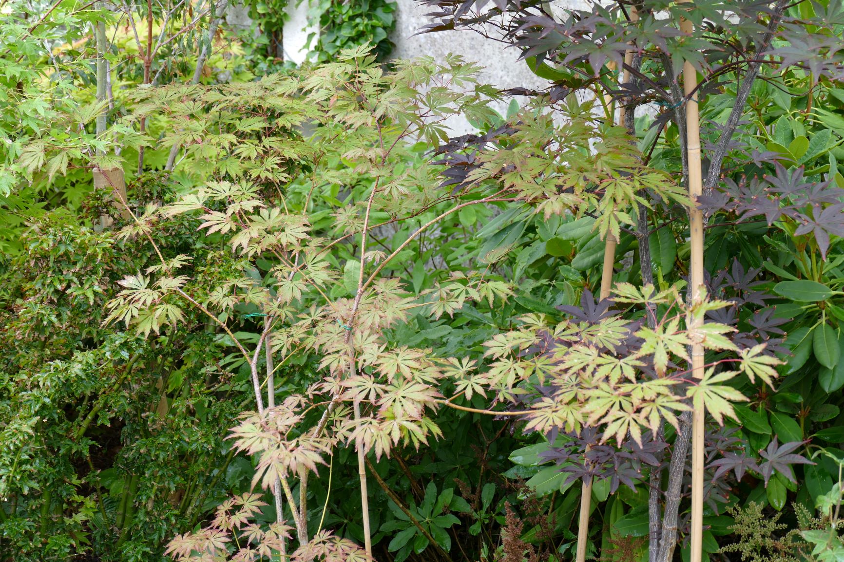'sensu' dans son massif, en compagnie de mon premier 'shishigashira', 'red empereur' et 'beni hagoromo' au dessus. Très résistant au soleil ! J'attends les couleurs d'automne !
