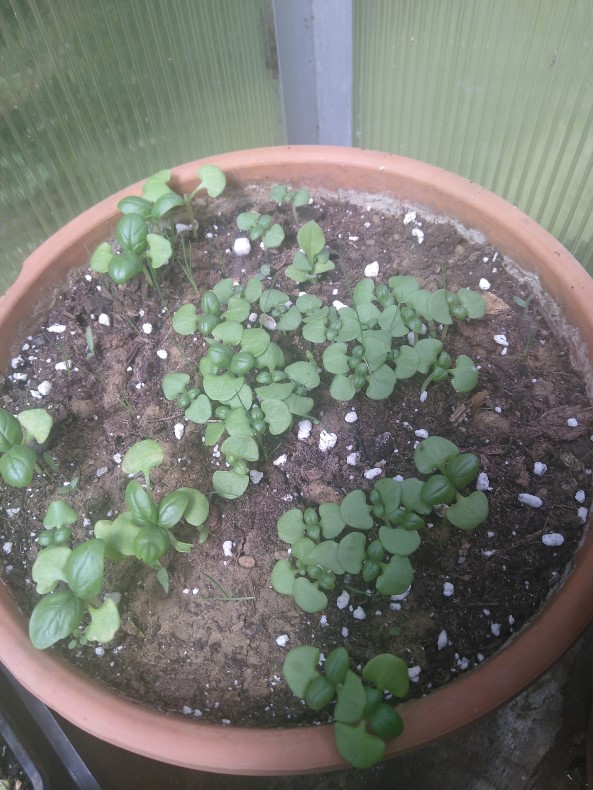 Le petit basilic grandit en pot tranquillement (j'avais fait des semis en février mais ils ont crevé, j'ai recommencé)