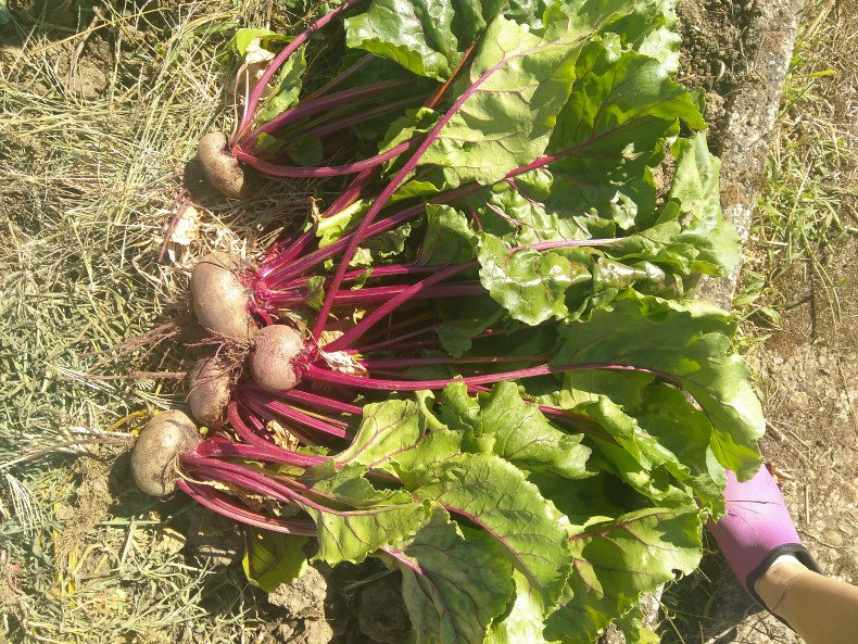Les jolies betteraves qui ont fini par bien grossir et les deux rangs que j'avais semés ont bien donné! tout a réussi, pas de vers, pas abîmées, un régal