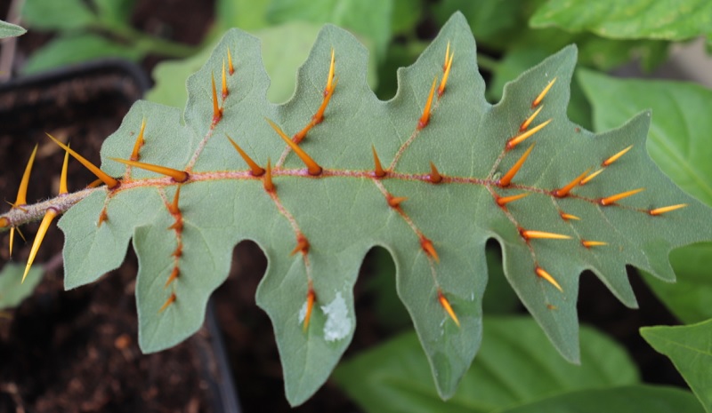 Voilà la morelle de Quito, mais les épines poussent sur l'endroit et non l'envers de la feuille...