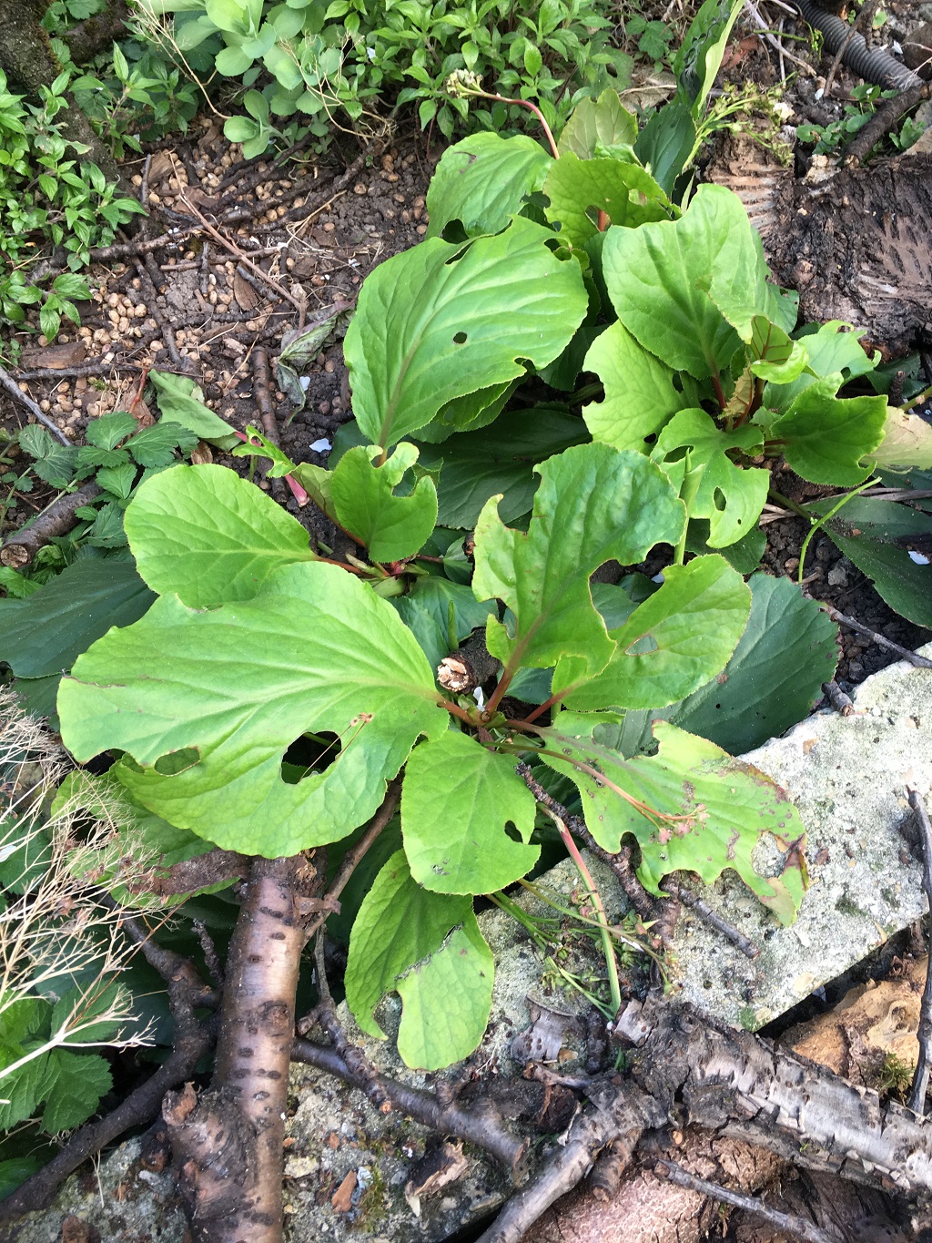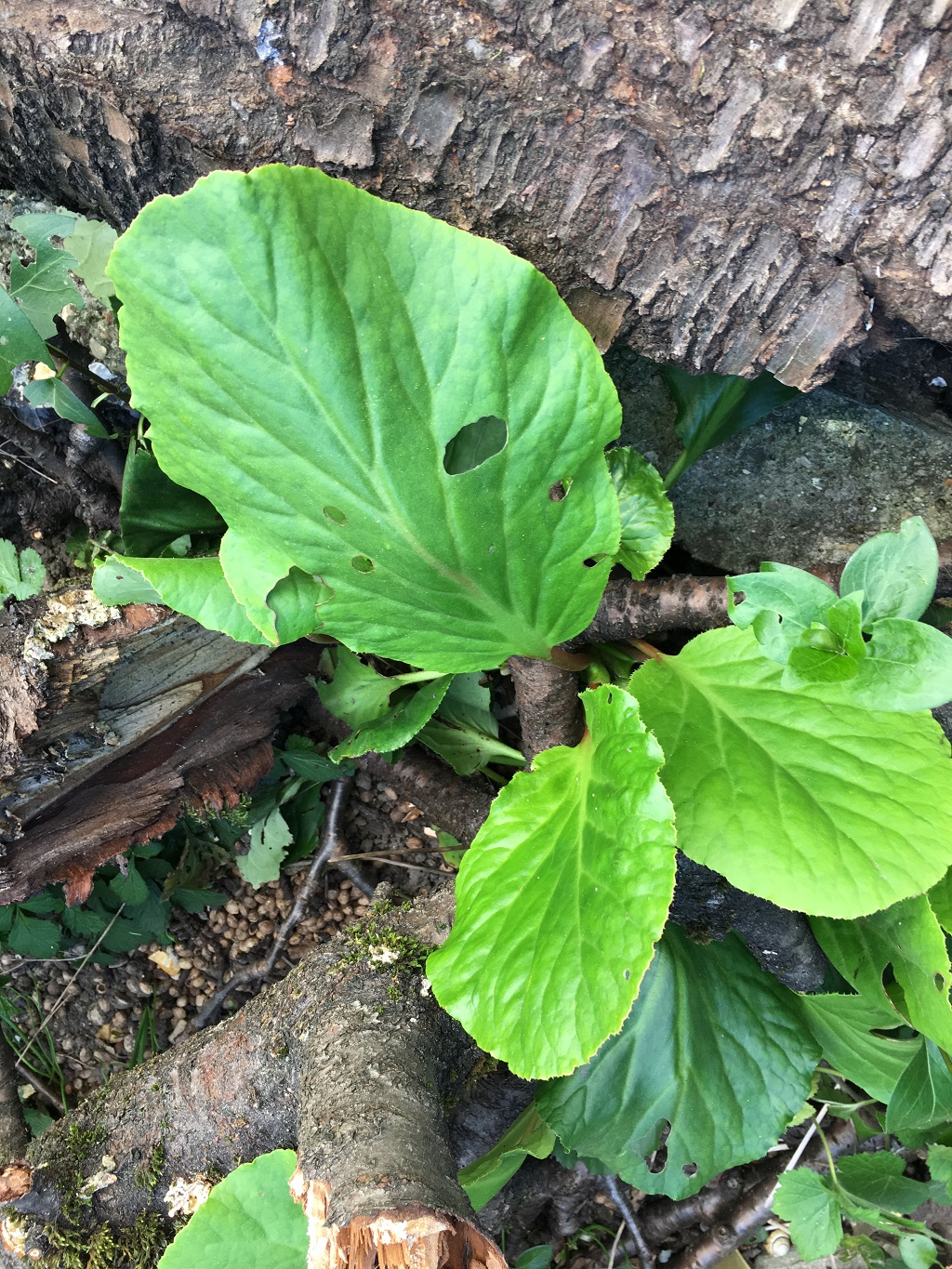 Normalement, les gastropodes mangent les feuilles par le bord et l'on voit souvent des traces séchées de leur bave.