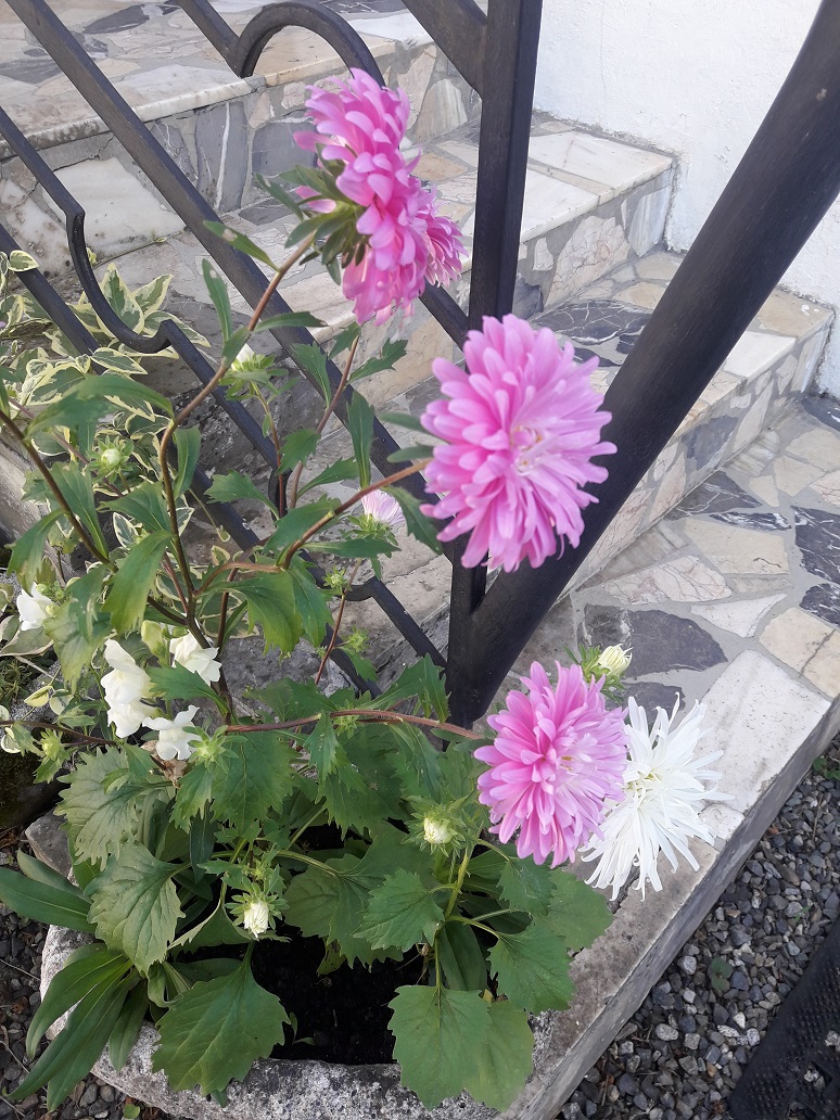 Un sachet de graines sans rien écrit dessus a permis de nous donner ces quelques fleurs dans des pots et dans le jardin. Elles sont très jolies (je trouve), roses, bleues ou blanches, il ne leur manque qu'un nom. Qui saura m'aider?