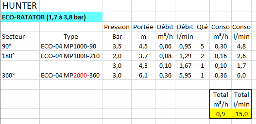 J’ai regardé sur le site de chez R….rd pour des tuyères ou turbines mais je suis complètements perdu dans les débits, les zones d’arrosages, etc….