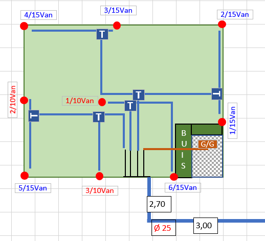 Oupsss concernant le point d’eau, je suis à l’opposé de mon compteur, la ligne ou je peux me connecter est un tuyau en Alpex Ø 20 intérieur, mon débit théorique devrait être MAX 30l/min soit 1800l/h !!!! un peu juste, déplus j’ai +/- 50 m de tuyau avant d’arriver aux tuyères…. (suis pas sorti de l’auberge).