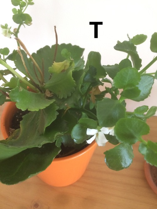 En hiver toutes les plantes d'intérieur doivent être rapprochées de la fenêtre et l'arrosage doit être réduit en fréquence. Globalement on attend que le substrat soit bien sec à hauteur d'un doigt et que la plante montre des signes de soif (pour les Kalanchoe et Peperomia les feuilles deviennent molles au toucher)