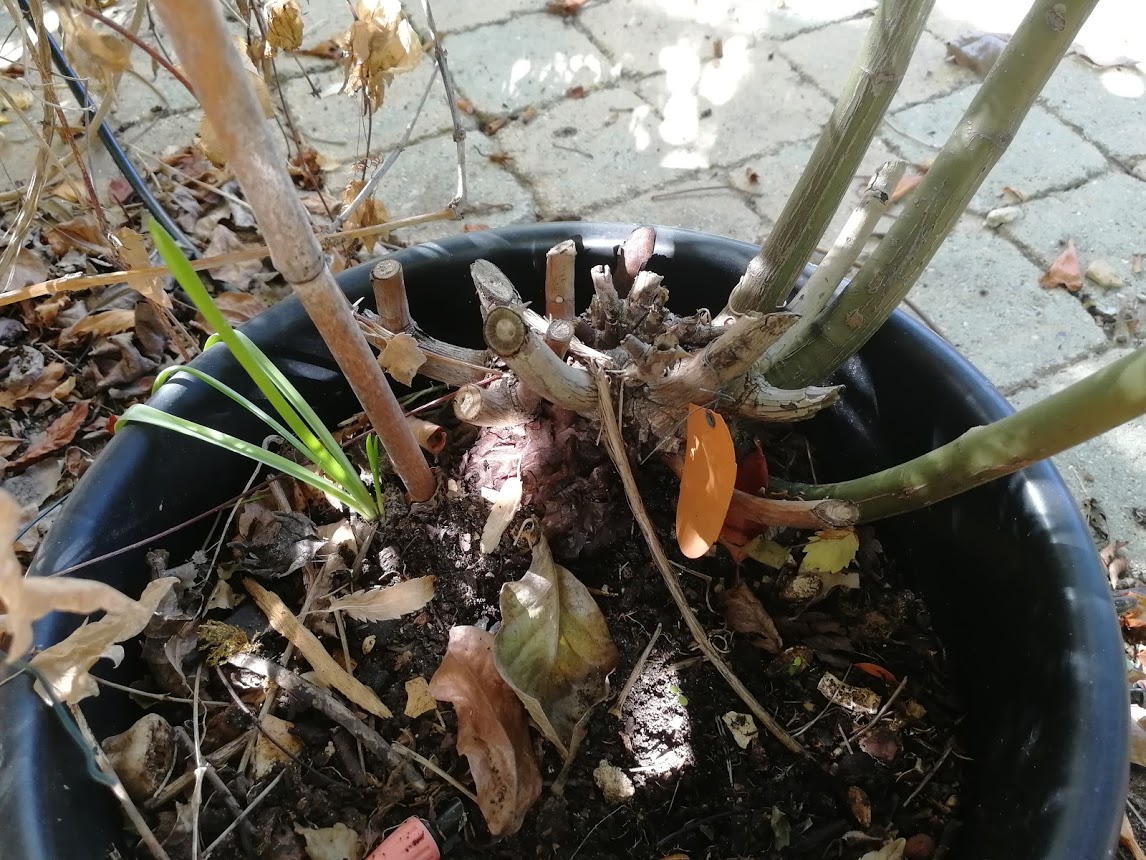Et aujourd'hui, et bien, ma base est une grosse boule de départs secs et seulement 3 branches vivantes sur un coté.