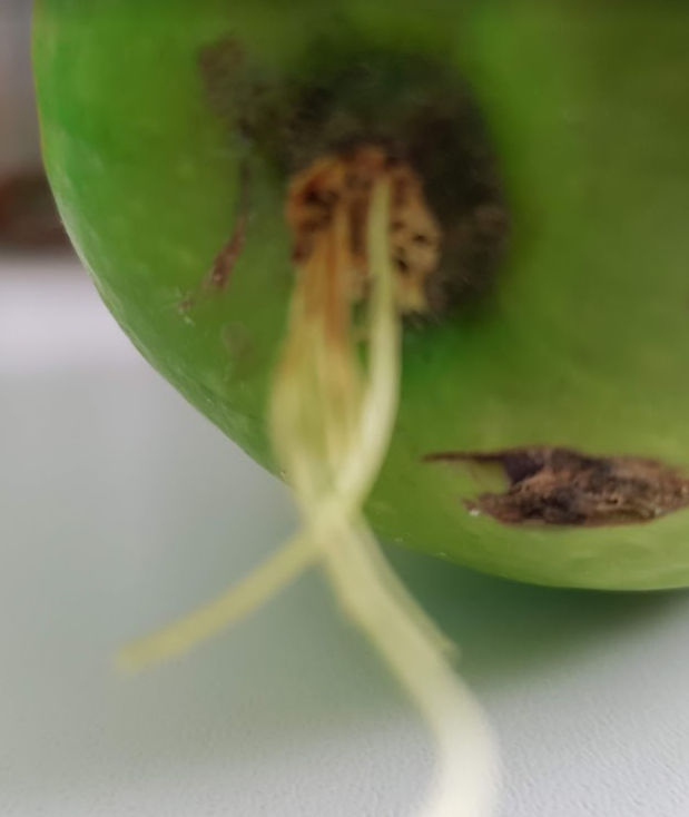 Quelle est la longueur ? Quelle est la largeur ? Est-ce que c’est le pédoncule à gauche ou un objet se trouvant dessous ?