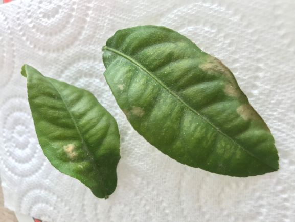 Mais hier j'ai remarqué trois feuilles avec des taches. Je ne sais pas ce que c'est. J'ai donc besoin de votre aide, car je ne veux pas voir mon citronnier devenir malade une fois de plus. J'y suis très attachée.