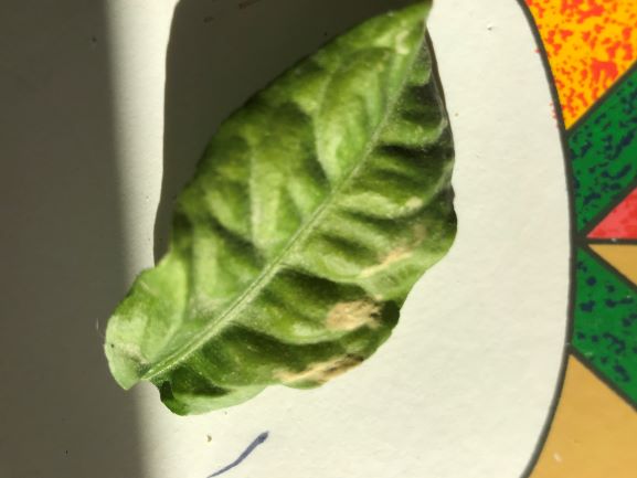 Les taches marron peuvent être des brûlures solaires sur des feuilles mouillées.