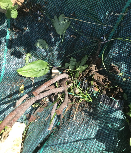 Les « bâches » anti-mauvaises herbes (qui pullulaient et donc prennaient l’eau et nutrition sur les rosiers - de ce que j’ai compris) sont en place depuis 1 mois.