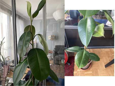 Bonjour ! Mon caoutchouc est mal en point. Les feuilles du bas jaunissent (certaines développent des tâches brunes) et tombent tandis que celles du haut sont très tombantes. Quand je l'ai acheté il y a un mois et demi, les feuilles étaient belles mais le terreau très humide. J'ai attendu qu'il sèche avant d'arroser (pas plus d'une fois/semaine). Je l'ai rempoté il y a quelques jours (pot plus grand, terreau neuf). Les racines semblaient en bon état.