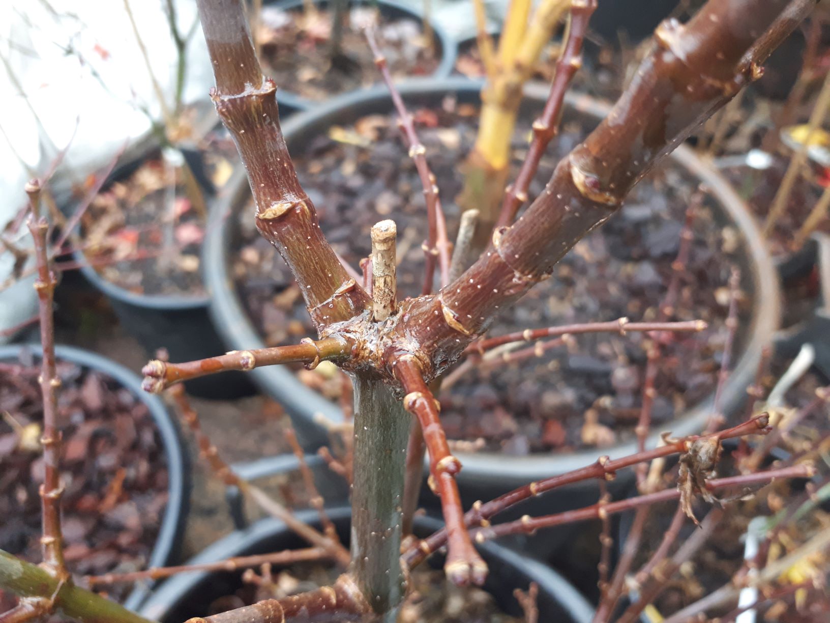 Je me suis rendu compte que la pépinière Maillot effectue presque systématiquement cette suppression de la flèche de chaque axe dominant, provoquant au niveau du point de coupe la formation de rejets vigoureux... Pratique beaucoup plus rare chez Esveld, Choteau ou même Fontin... Je me demande quelles conséquences sur l'architecture de l'Acer une telle pratique va avoir, car à l'évidence elle modifie sa morphologie !