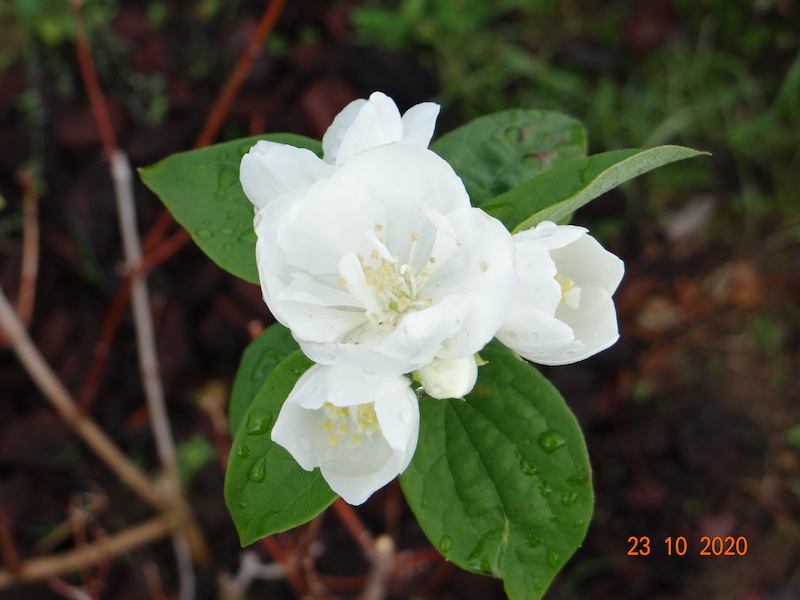 Seringat Virginal planté cette été, à la plantation il a perdu toutes ses feuilles et là il refait quelques fleurs