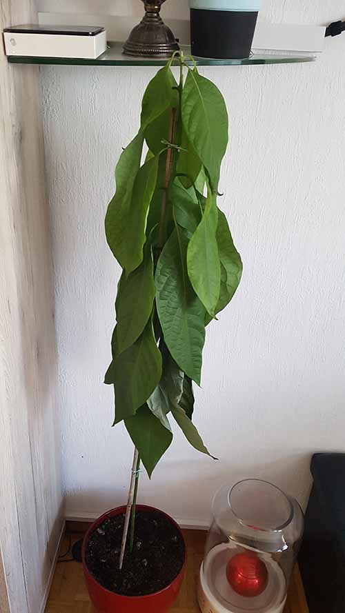 J'ai besoin d'aide ! J'ai récemment changer le pot de mon avocatier. Je sais que la plante peut ne pas supporter le changement mais par dessus le marché il y a 3 semaines je l'ai trop arrosé et elle baignait dans l'eau.. par précaution je l'ai donc déterré et ai remis une nouvelle terre sèche. Mais depuis catastrophe... ma plante à les feuilles vers le bas et celles d en dessous commence grandement à sécher (mais elles ne tombent pas). Jai déjà du enlever une dizaine de feuilles :cry: